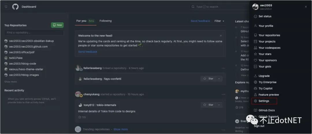 1、点击「头像」->「Feature preview」->「Passkeys」,将 Passkeys 功能开启,如下图: