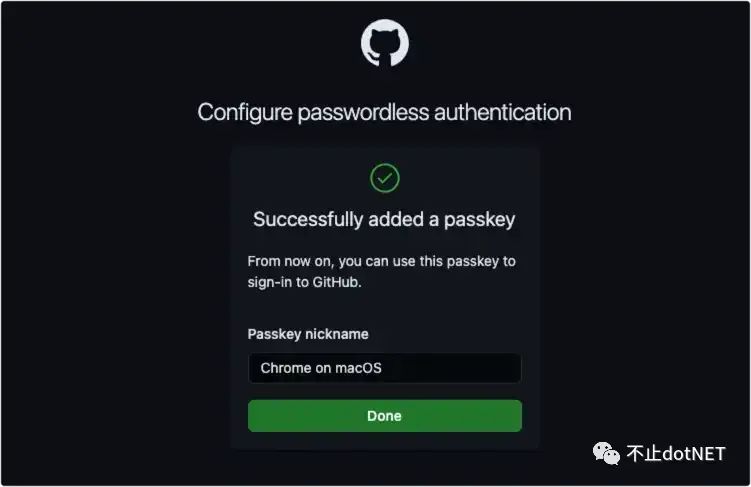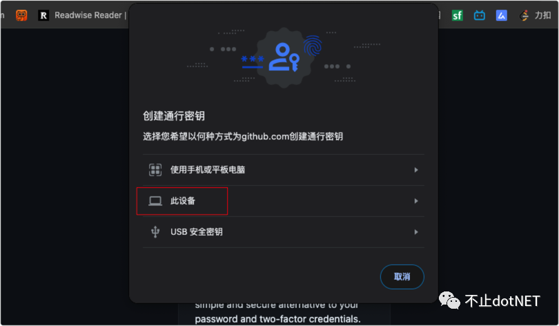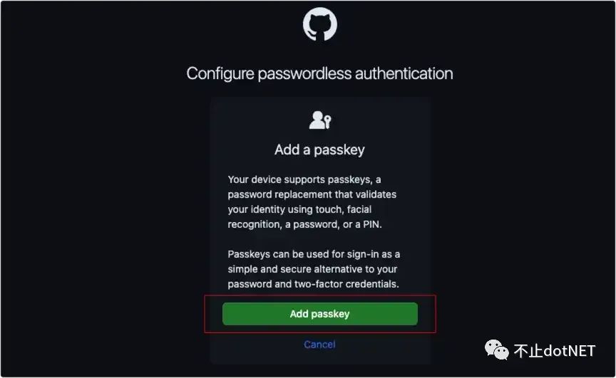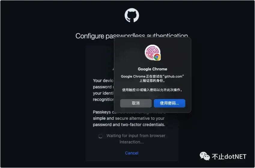 4、点击「Add a passkey」后会出现 Github 的登录确认: