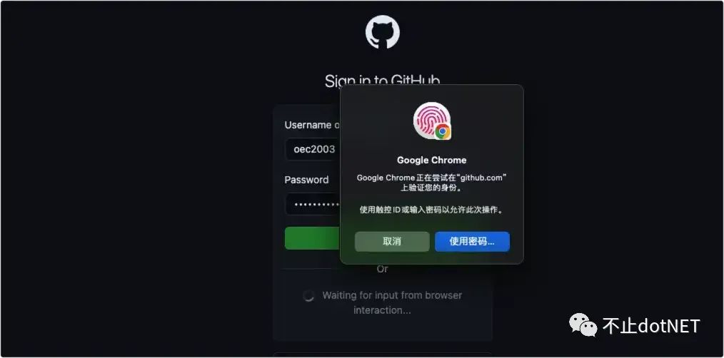 10、现在可以退出 Github 来试试新的登录方式了,点击使用 Passkey 方式,进行指纹识别就可以成功登录了: