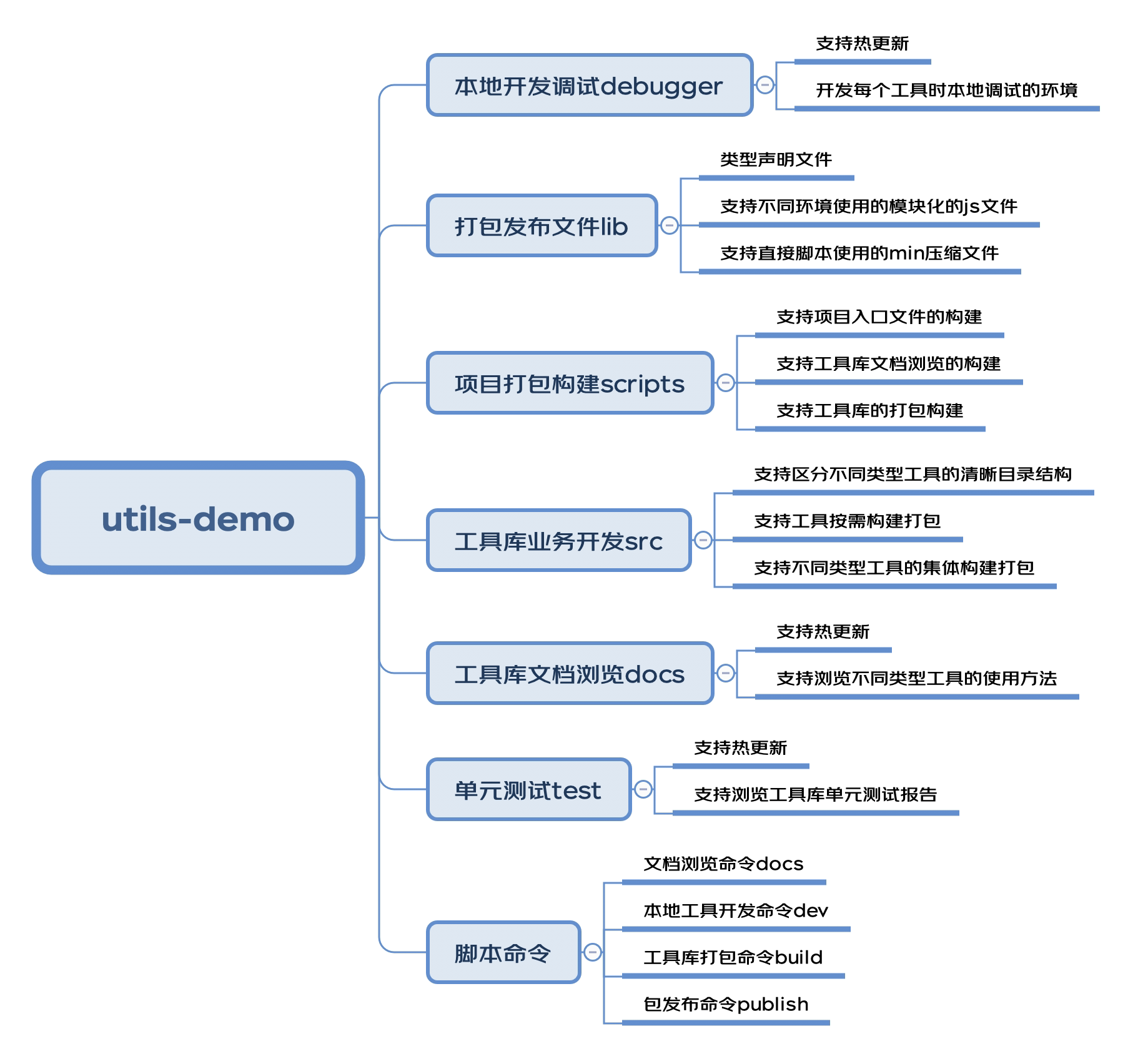 一个完备的工具库需要有一个文档来展示开发的工具函数,它可能需要具备以下几点支持: