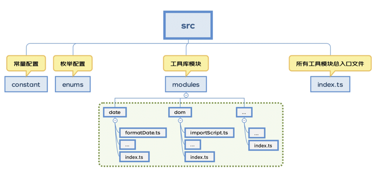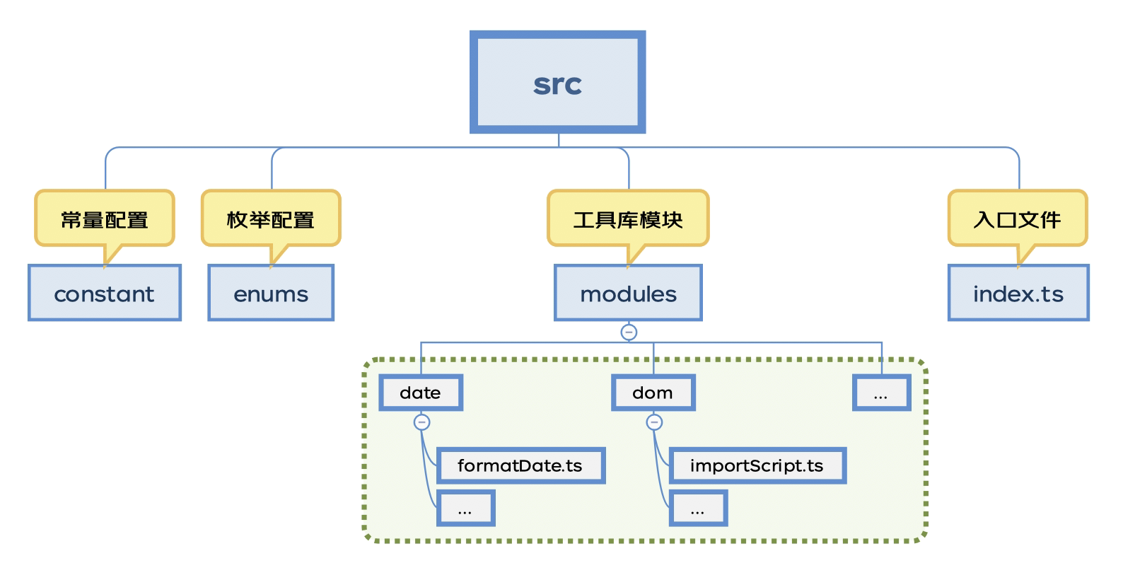创建工具库业务开发 src 文件目录,明确怎样规划工具库包,里面放置的是工具库开发需要的业务代码: