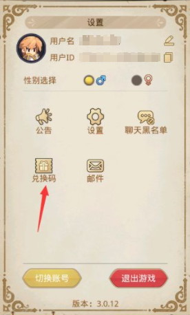2.我们在设置界面中能够看见我们的兑换码按钮;