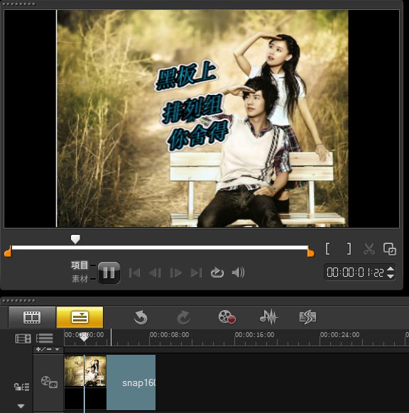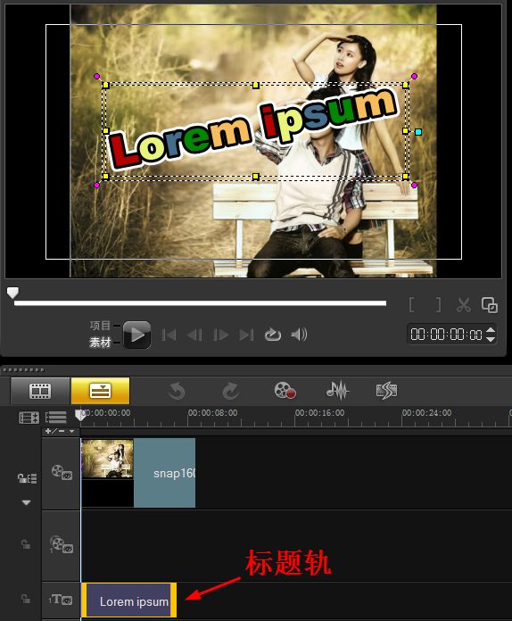 3、单击鼠标左键并拖拽至会声会影视频制作软件覆叠轨中的适当位置后释放鼠标左键,即可在覆叠轨中添加标题字幕。