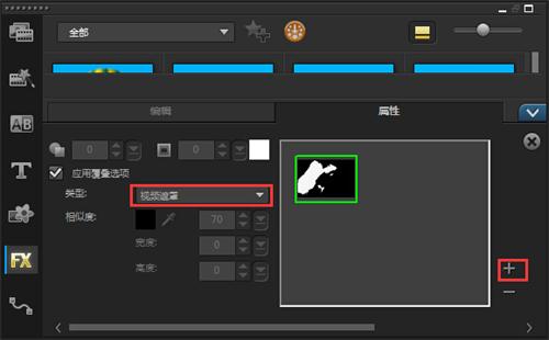 4、导入视频制作。新建一个项目文件,在覆叠轨插入一张素材,在属性中勾选“应用覆叠选项”,类型中选择“视频遮罩”,在后面的列表中点击添加,如图3所示,找到刚才保存的项目文件,如图4所示,点击打开,视频遮罩就导入到遮罩列表中了,如图5所示。