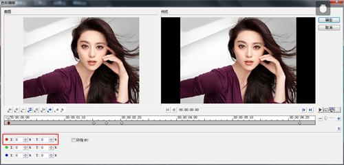 10、继续给改素材加上“色彩偏移”滤镜,在02:10上添加关键帧,将红色X轴数值调整为-99,如图11所示,其他帧与上一个滤镜设置相同,最后点击确定。