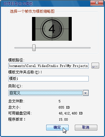 四、模板进入渲染过程,弹出“将项目导出为模板”对话框,设置模板保存路径,然后单击“确定”按钮。