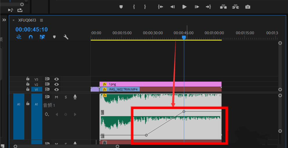 1、打开pr,导入视频文件,并拖到时间线面板。 2、在效果控件窗口中我们看到视频的声道音量,我们可以在这里进行调节。  3、在音量-级别选择合适的位置,并设置关键帧。 4、再往后移动一些位置,调整参数。 5、声音过渡的效果  6、将音频放大,就可以看到关键帧,我们也可以在音频中拖动来调节视频声音。