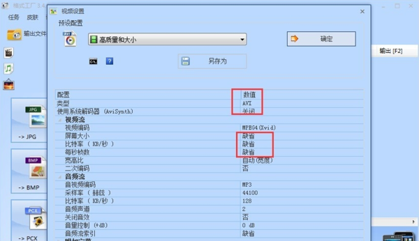 6、如果在后续的转格式过程中,需要高清但是体积小的视频的话,要选择默认的AVI格式转换,画面尺寸还是要选择“缺省”。