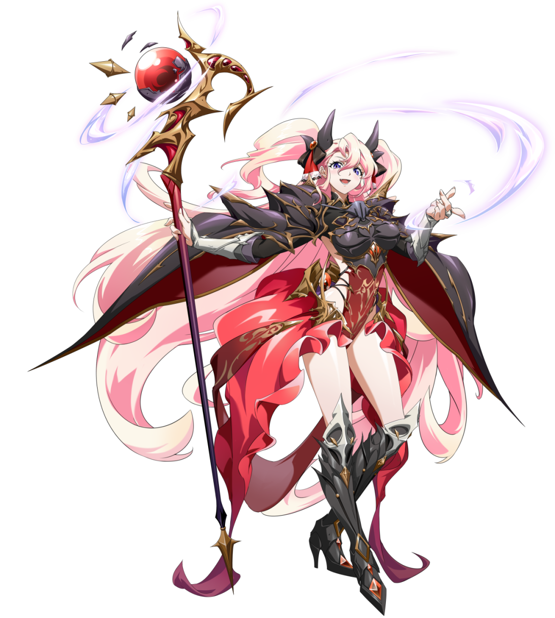 [魔法伤害]对自身周围4格内的所有敌军,造成0.4倍的范围伤害,并施加2个随机的弱化效果。行动结束时,为拥有[冕焰之护]的友军恢复施法者智力3倍的生命。