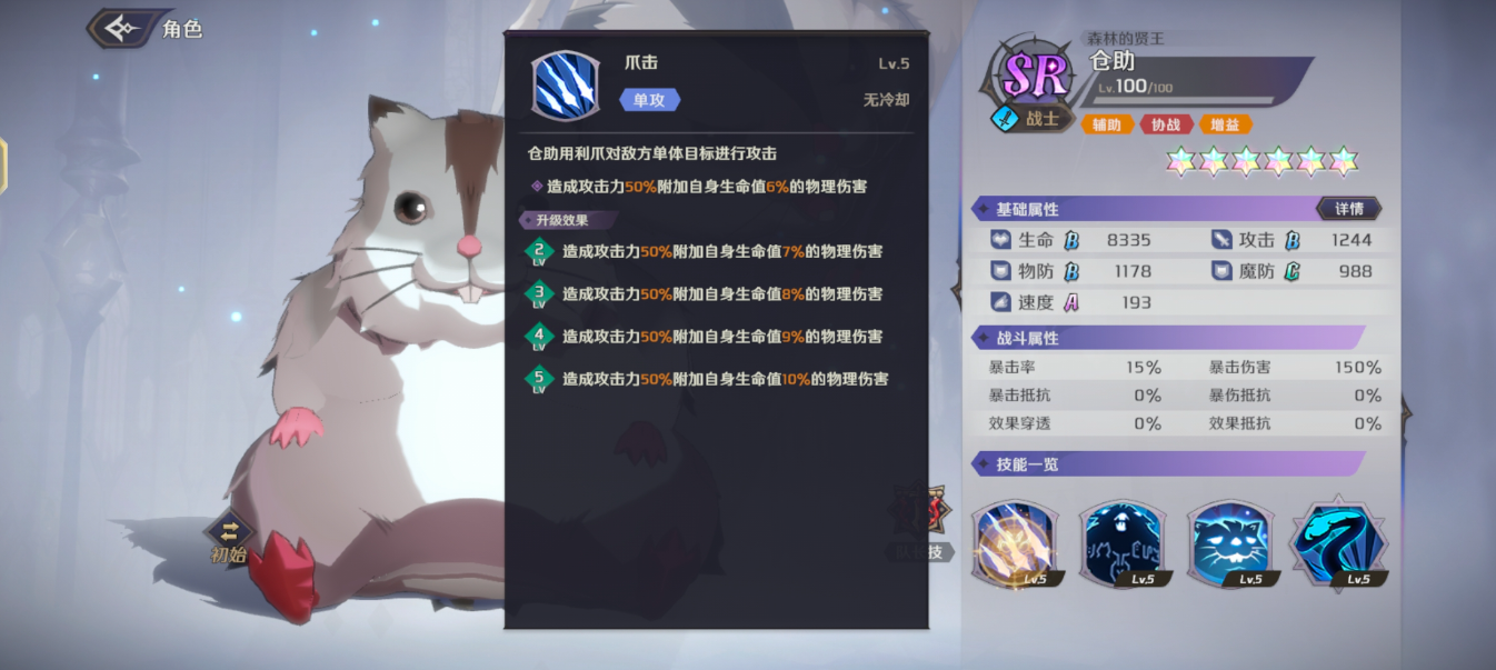爪击为仓助的普攻攻击,是将攻击力和生命值混合计算的物理伤害。