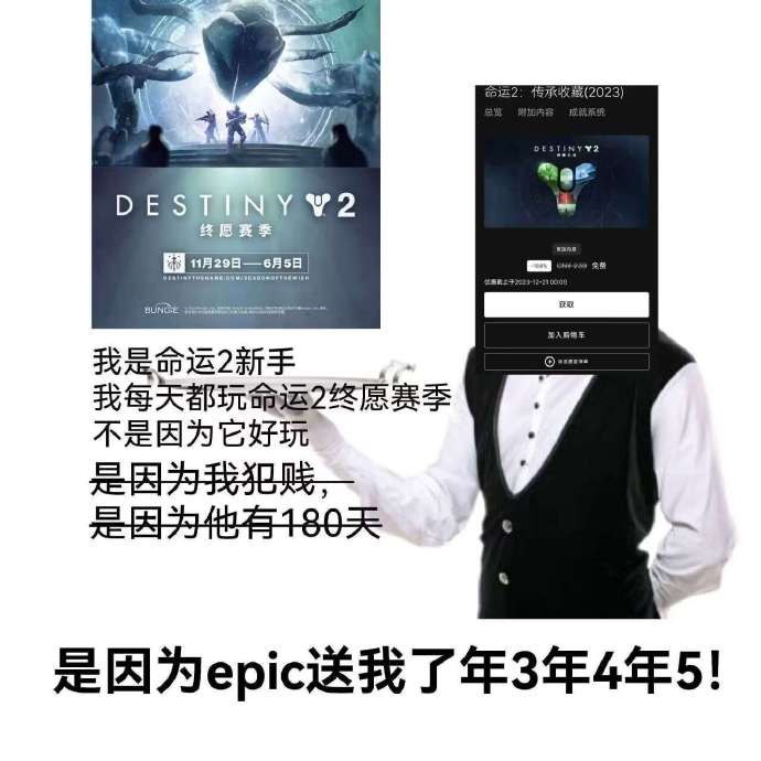 《命运 2:传承收藏》可在 Epic 游戏商城免费领取,12 月 21 日 0 时截止,支持中文。包括《邪姬魅影》《凌光之刻》和《暗影要塞》内容。下周继续送出一款神秘游戏。