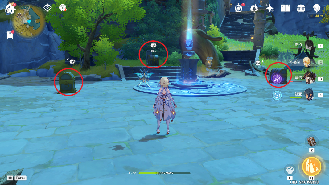 6,收集完三个光导装置后,带回中间的机关处,机关启动后会出现五个盗宝团