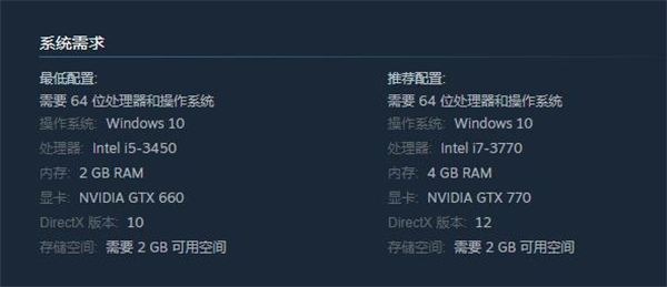 这款游戏的配置要求比较中规中矩,有些配置是比较低的,但是有些配置相对同类游戏来说还是稍微有点高的,处理器方面就是这样,这个游戏对于处理器的要求最低是i5,很多游戏都没有这么高的需求。