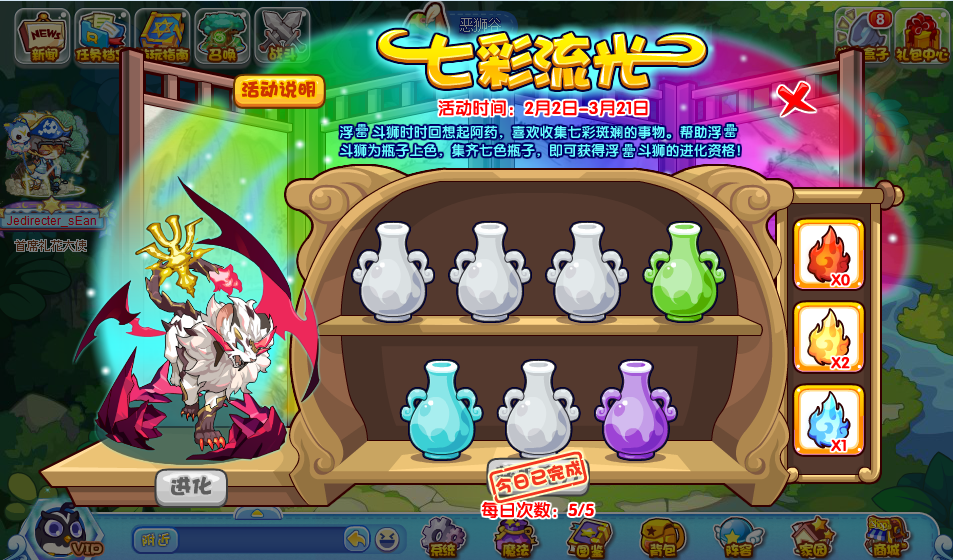 当七个瓶子都成功上色,我们就可以开启:浮罍[léi]斗狮 超进化的资格啦!