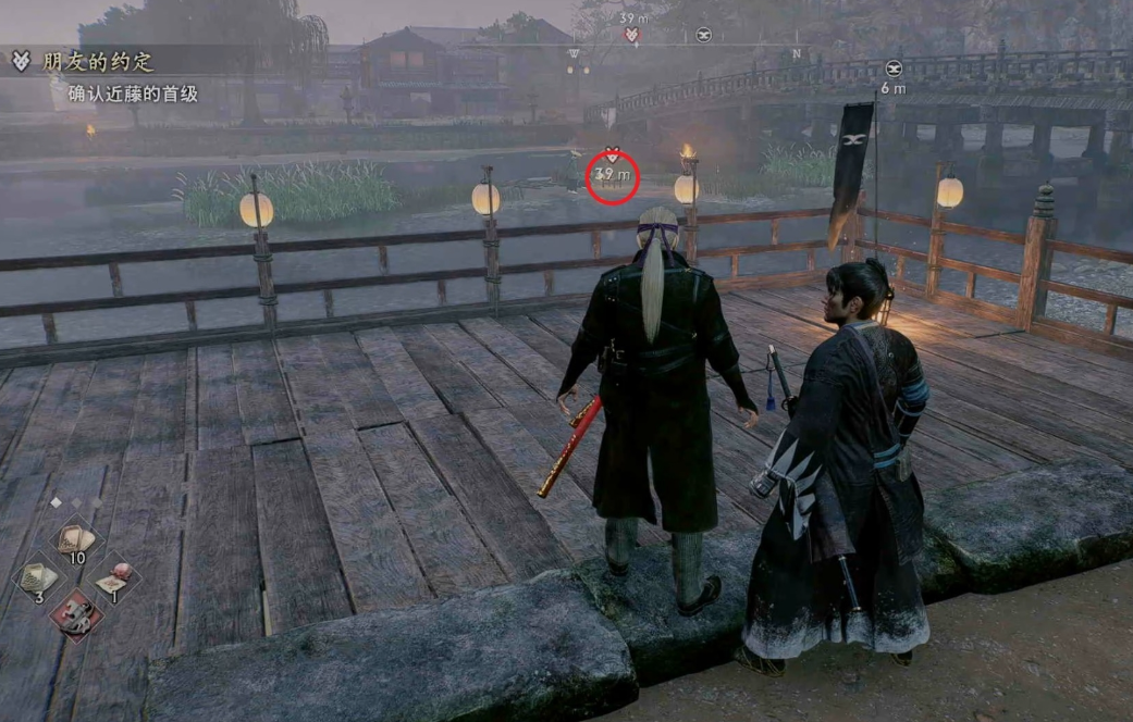 做掉红圈里的小兵并观察箱子里有没有近藤勇的头。