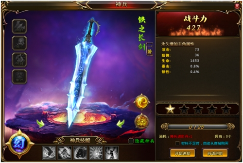 (3)神兵进阶成功后,将获得更炫更酷的外型和更加强大的属性;