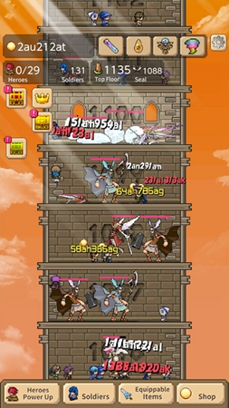 1、游戏的背景设定为一座非常高的塔。塔的每一层都是一个关卡,每个关卡都有一个英雄。