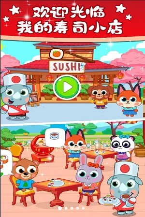 1、ユニーク的萌宠画风:采用萌萌哒的宠物画风,让玩家在游戏中感受到愉悦的氛围。同时寿司店里的各种角色也是可爱的小动物,增加了游戏的乐趣。