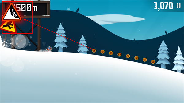 7、如果右上角的雪崩标志疯狂晃动和闪烁,那就代表雪崩就快追上你了