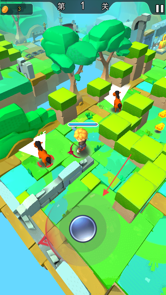 2、在游戏场景中,通过屏幕下方的虚拟摇杆控制角色移动,应对关卡中的挑战。
