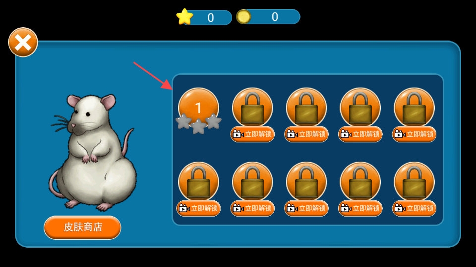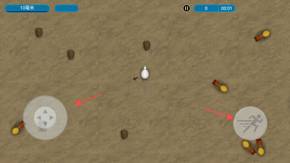 3、游戏中通过左下角方向键控制老鼠移动,右下角加速键可快速移动以躲避或收集物品。