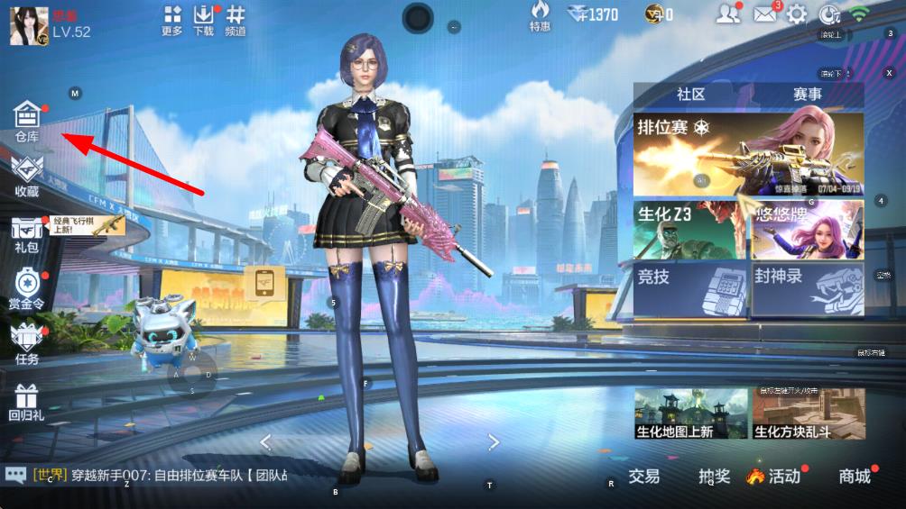 1、打开穿越火线游戏,在游戏主界面点击左侧菜单栏中的仓库选项。