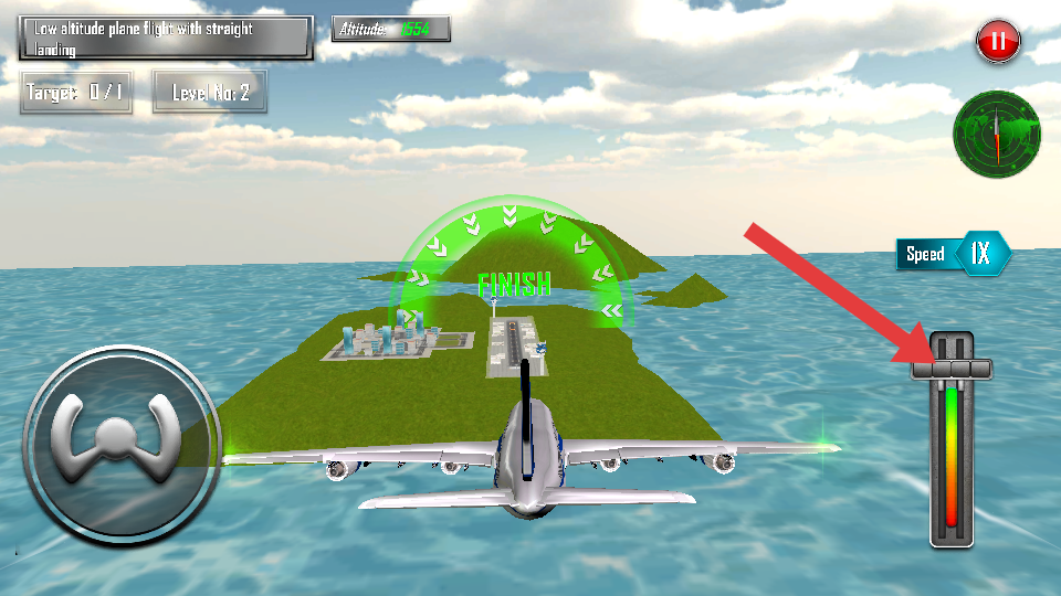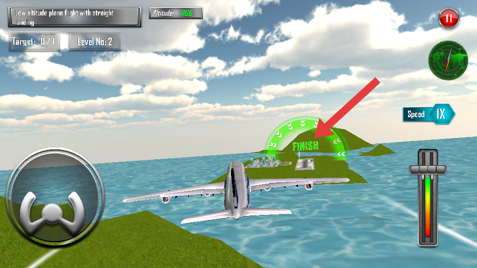 1、提前锁定目标,飞行中留意FINISH标识的降落区域,通过航向仪调整方向,确保飞机始终对准降落区域的中线,避免航线偏移。