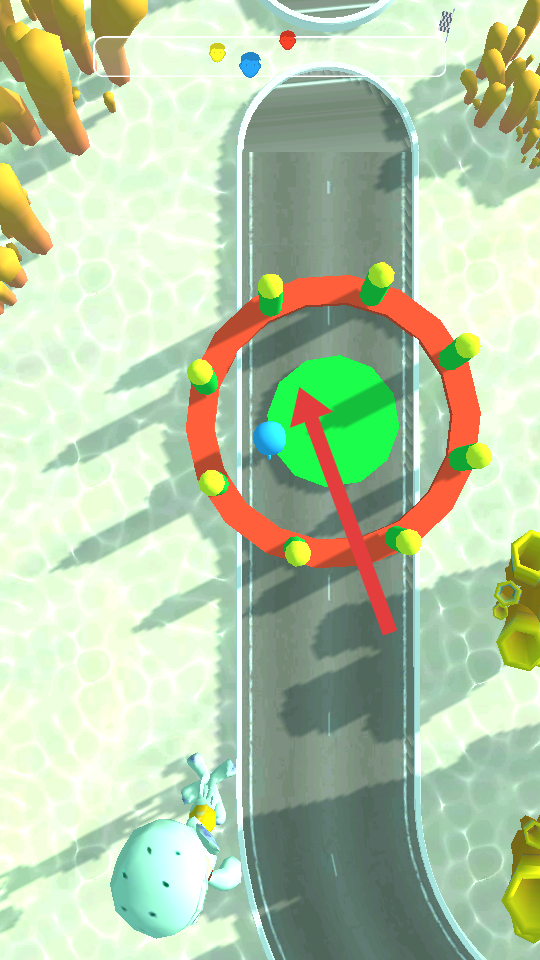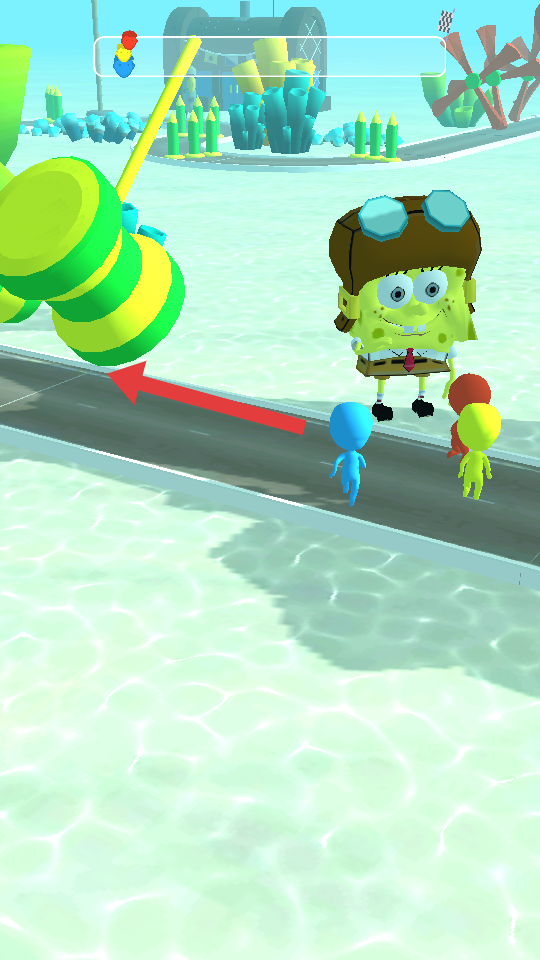 3、留意赛道里的特殊元素,像环形装置可借助它改变位置,遇到类似海绵宝宝的形象,尝试靠近,可能触发增益如加速。