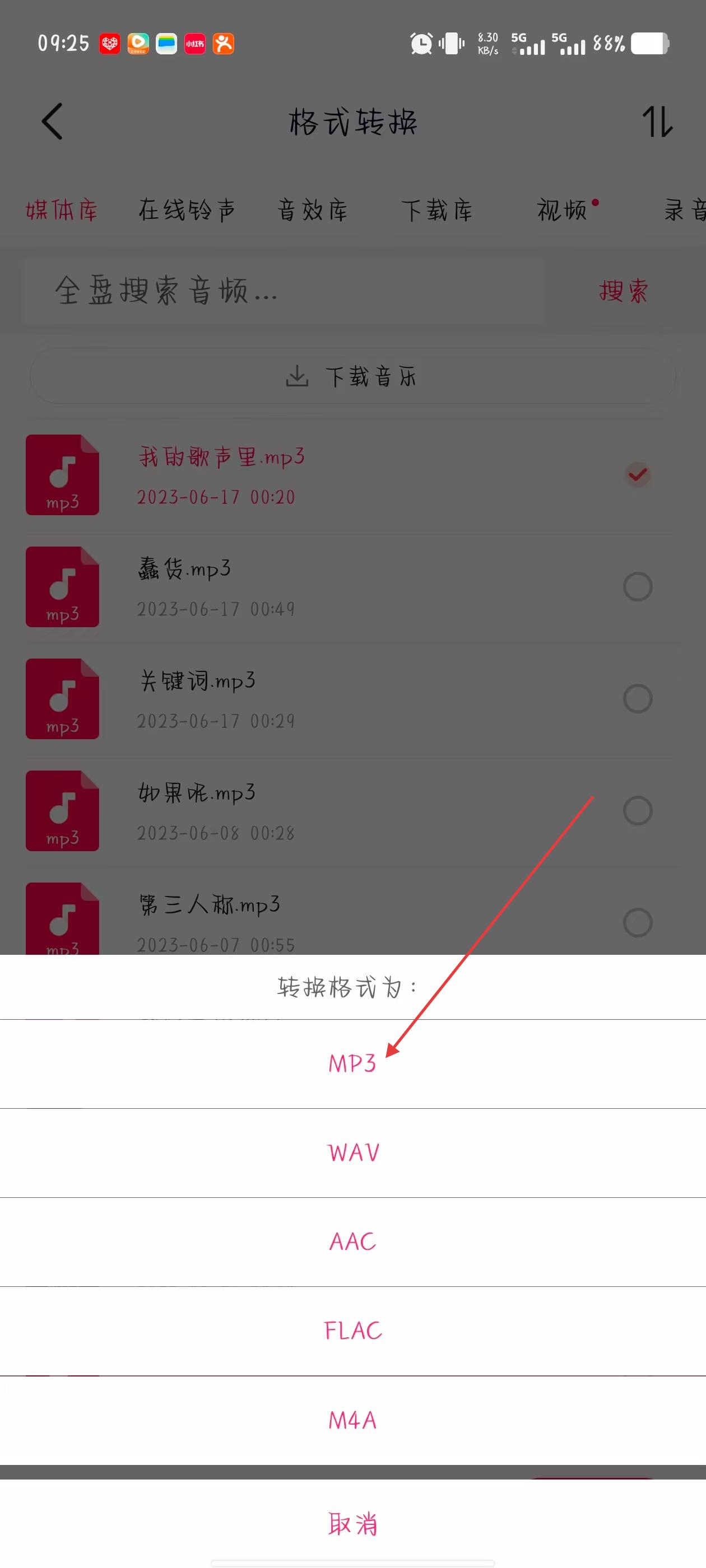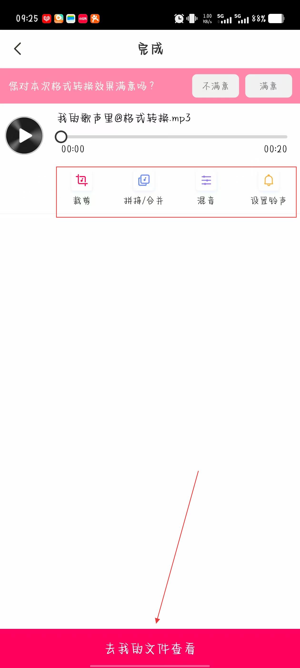 4、此时点击去我的文件查看,即可找到已经转换成MP3格式的音频文件。