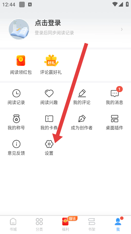 1、在疯读小说书城界面,点击底部导航栏我选项,进入个人的页面。