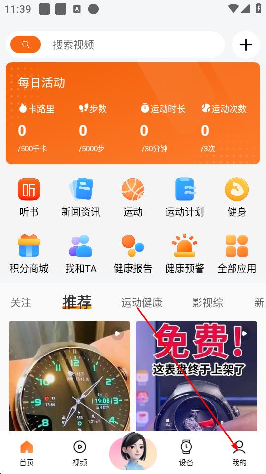 1、打开wearfitpro应用,点击底部导航栏最右侧我的选项。