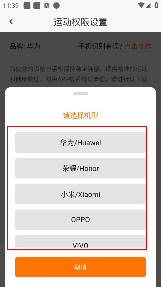 4、在弹出的选择机型框中,选择正确的手机品牌。