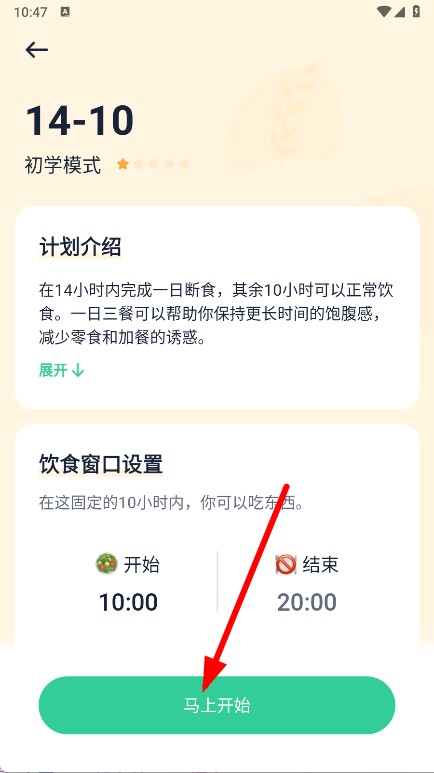 3、进入14-10计划介绍页面后,点击马上开始按钮。