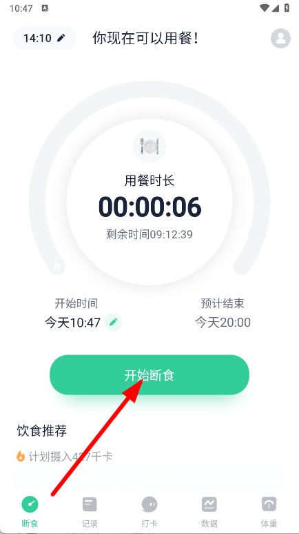 4、当处于用餐时间结束后,点击开始断食按钮,正式进入断食阶段。