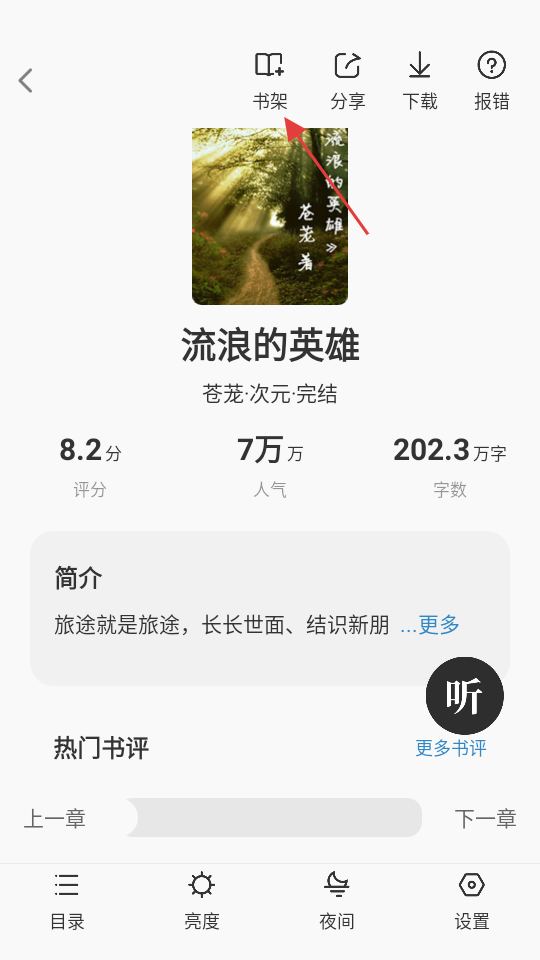 4、在小说菜单页,可点击书架按钮,将小说加入书架,方便后续阅读。