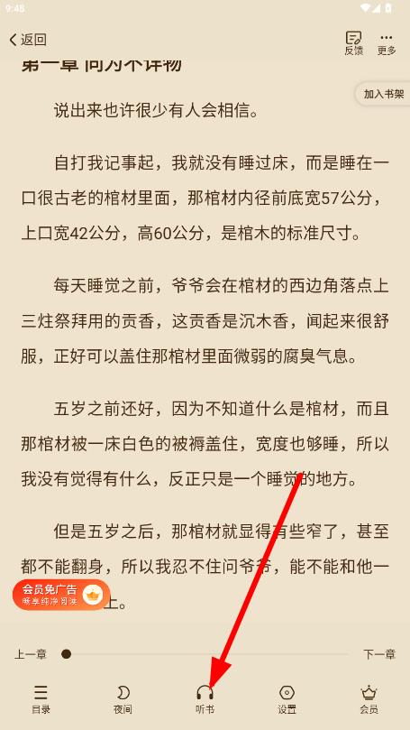 3、在阅读界面下方的导航栏中,点击听书选项。