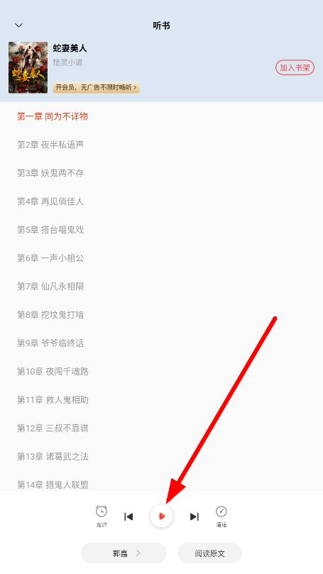 4、进入听书界面后,点击播放按钮即可开始听书。