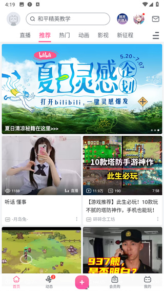 哔哩哔哩移动客户端专注于acg相关内容的在线视频分享,目前有十三个分区:番剧、动画、音乐、舞蹈、游戏、科技、生活、鬼畜、时尚、广告、娱乐、电影、电视剧。