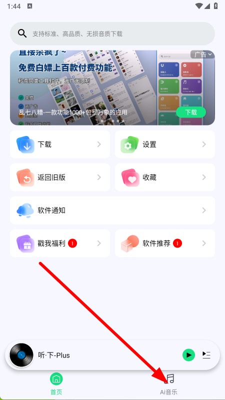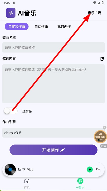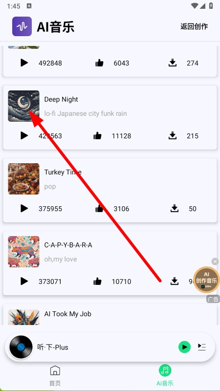 1、点击底部AI音乐选项,进入AI音乐页面。