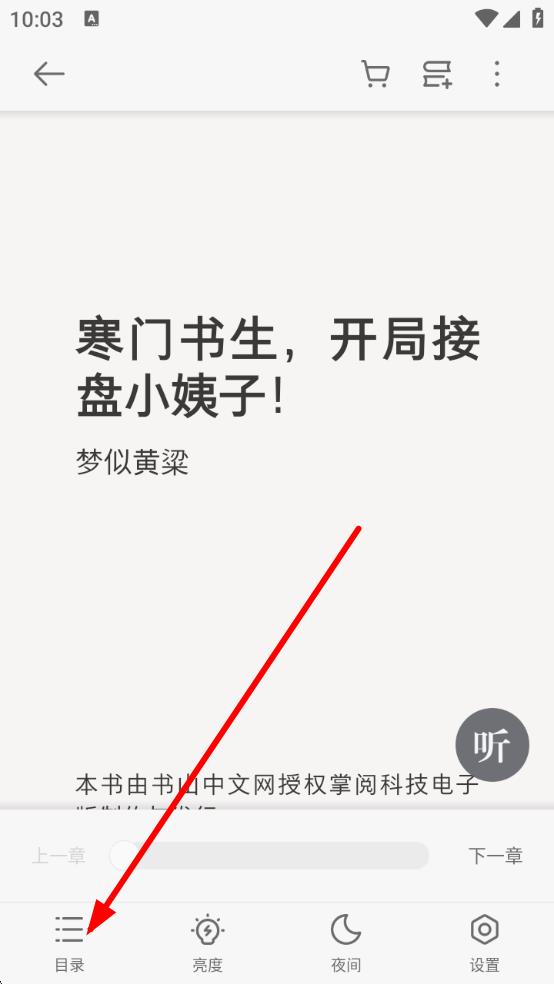 2、在阅读界面底部,点击目录按钮调出目录列表。