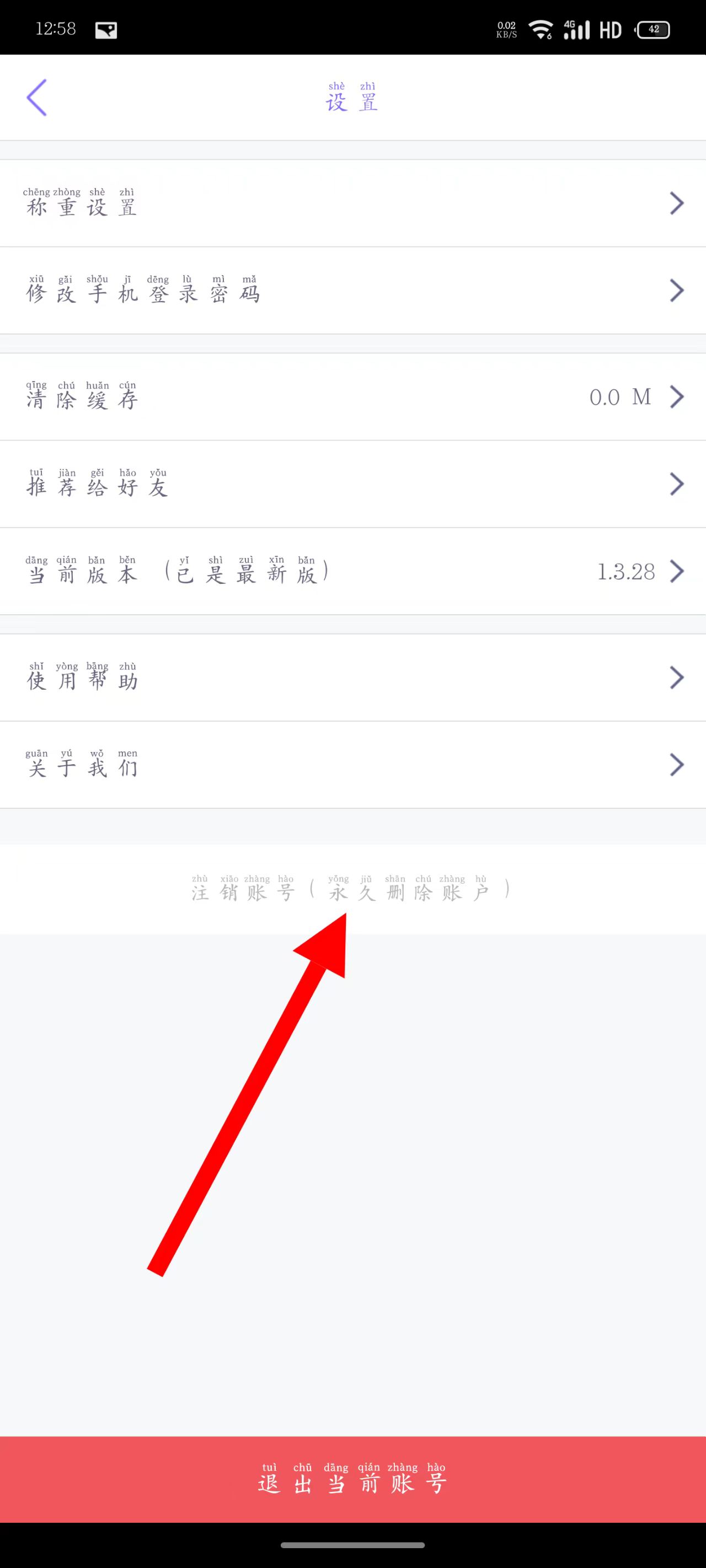 3、在设置页面点击注销账号选项,进入账号注销页面。