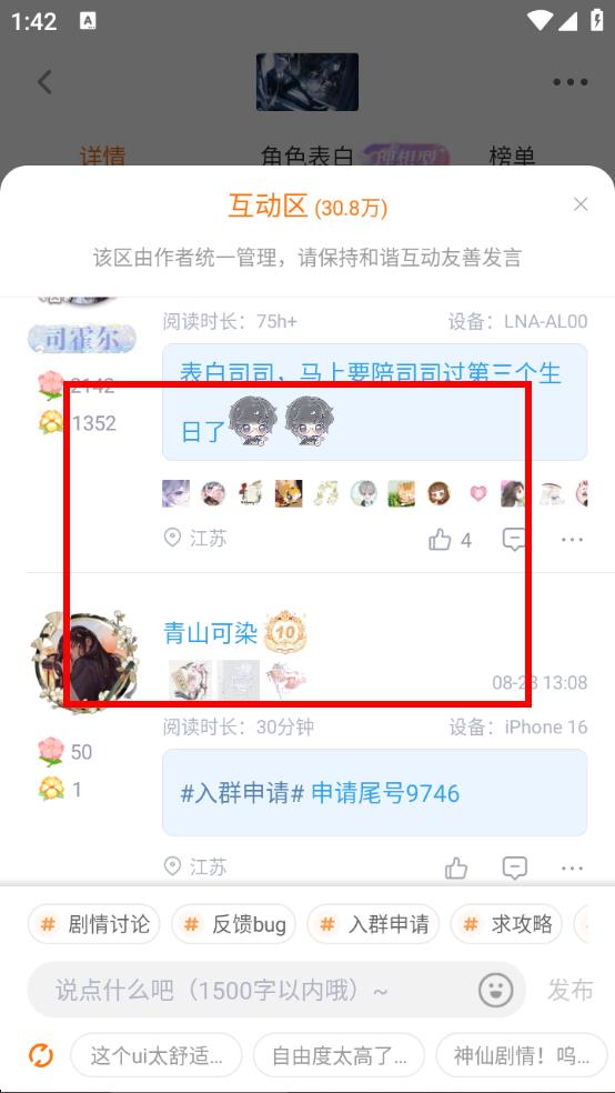 3、在互动区里就能看到其他玩家发布的各类评论,还可参与互动交流。