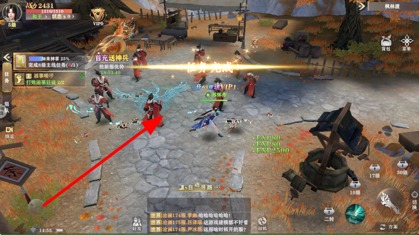 3、在江湖中会遇到各种敌人,可操控角色对其发起攻击,运用技能与敌人展开交锋,击败敌人,获取经验与奖励,推进冒险进程。