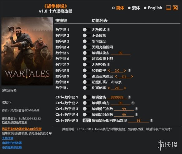 >>>《战争传说》v1.0十六项修改器风灵月影版[2024.12.12]