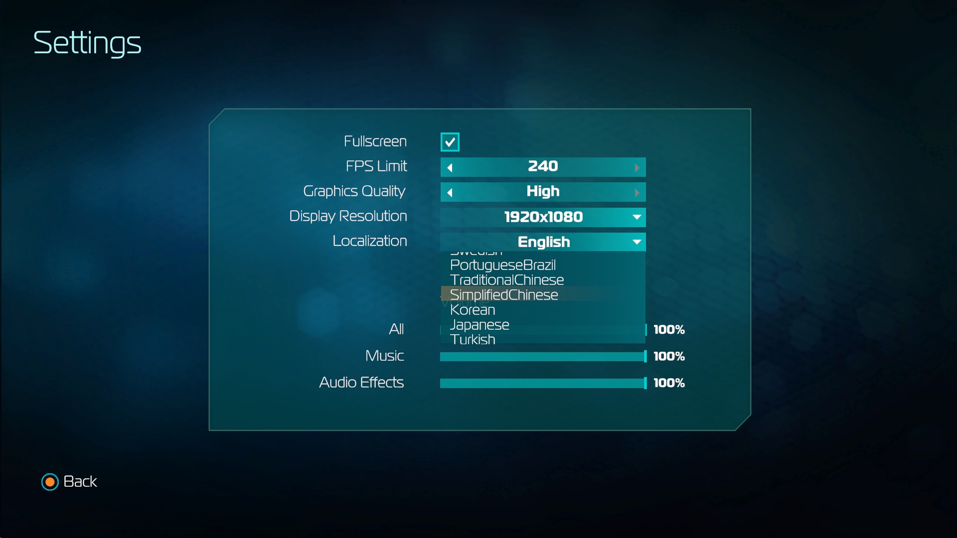 2、在Localization右侧的语言下拉栏中选择SimplifiedChinese,即可设置为中文。