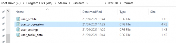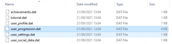 在您正在查找的文件夹中,有一个文件:user_progression.dat