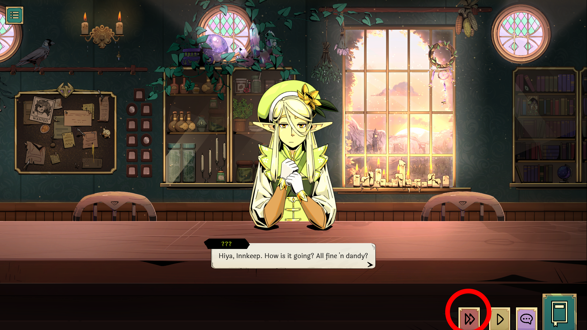 此补丁将一个新按钮添加到您的游戏内UI,您需要在设置中激活该按钮:快进按钮(见下面的屏幕截图)。此按钮将让您以超快的速度跳过对话气泡,并在下一个需要您做出的决定或混合饮料时暂停。