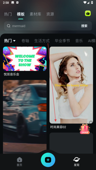 1、打开FilmoraGo应用,进入模板页面,选择一款想要使用的模板。
