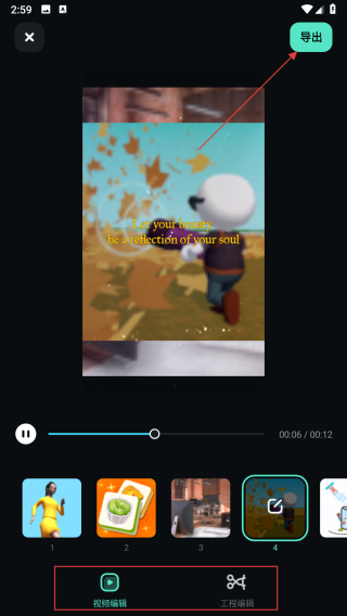 4、根据需求调整素材位置,点击右边编辑,完成后点击界面右上角的导出按钮,即可生成并保存使用模板制作好的视频。