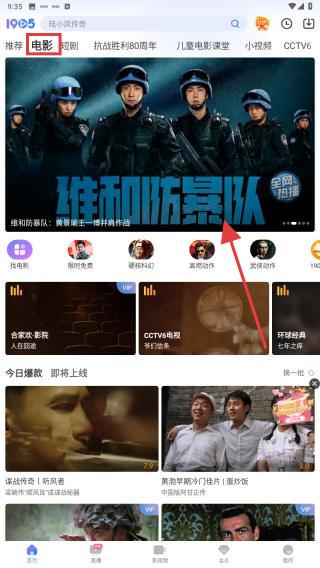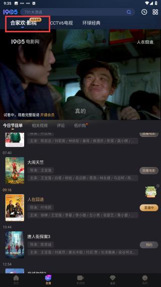 2、用户需要在合家欢影院找到正在直播的电影专区。